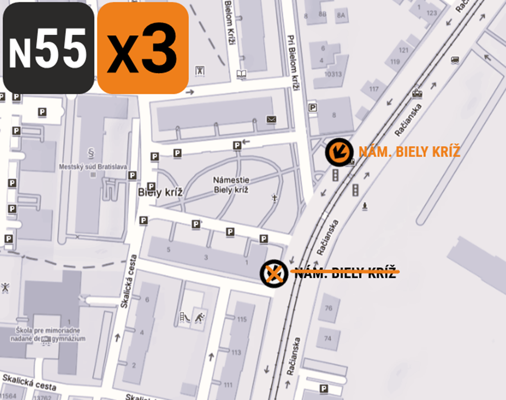 Dočasný presun zastávky Nám. Biely kríž (C) – linky N55 a X3
