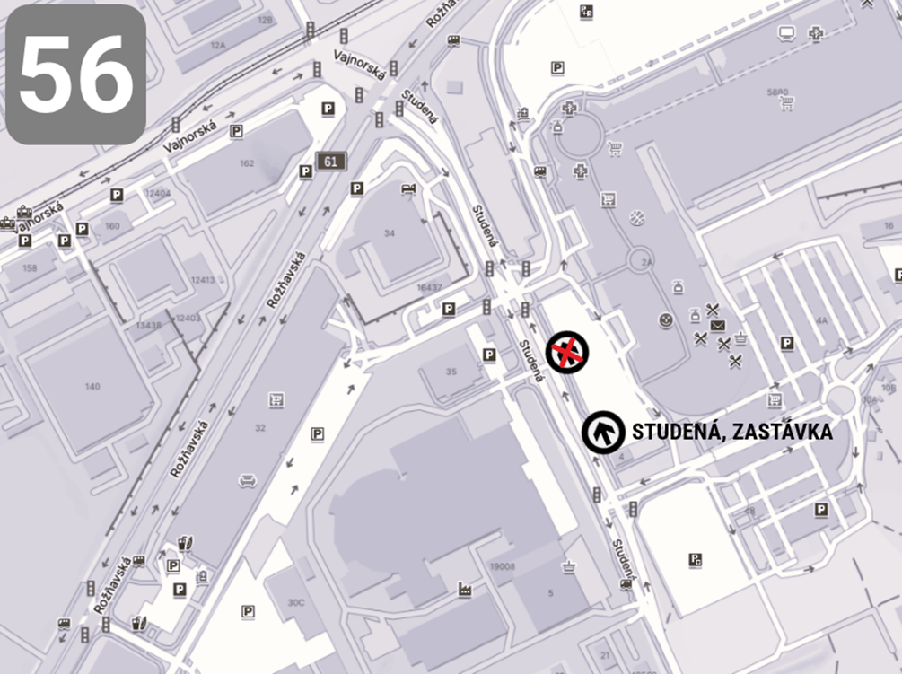 Trvalý presun zastávky Studená, zastávka (A) - linka 56 Trvalý presun zastávky Studená, zastávka (A) - linka 56 Od 28. 3. 2026 4:30